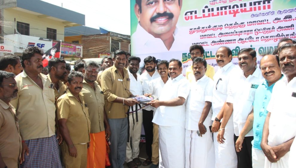 அதிமுக சார்பில் ஆட்டோ தொழிலாளர்களுக்கு. முன்னாள் அமைச்சர் எஸ்.பி.சண்முகநாதன் நலத்திட்ட உதவிகள் வழங்கினார்.