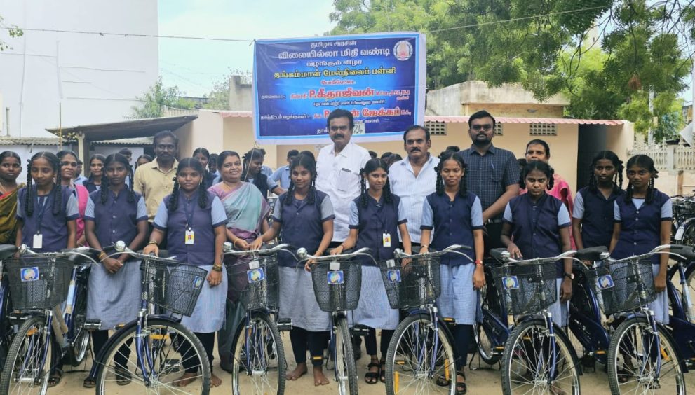 தூத்துக்குடி போல்பேட்டை தங்கம்மாள் மேல்நிலைப்பள்ளியில் நடைபெற்ற நிகழ்ச்சிக்கு பள்ளியின் தலைமை ஆசிாியர் ஜெபக்குமாா் தலைமை வகித்தாா். 42 மாணவிகளுக்கு வடக்கு மாவட்ட திமுக செயலாளரும் சமூகநலன் மற்றும் மகளிர் உாிமைத்துைற அமைச்சர் கீதாஜீவன் மாணவர்களுக்கு இலவச மிதிவண்டி வழங்கி பேசுகையில்