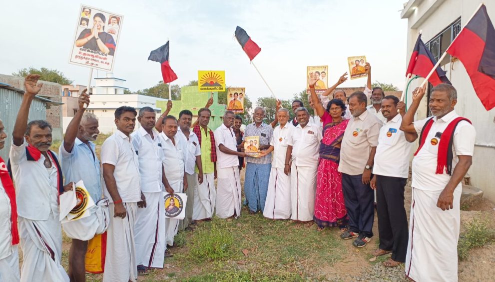 தூத்துக்குடி மக்களவை தொகுதி திமுக வேட்பாளர் கனிமொழியை ஆதரித்து விளாத்திகுளம் சட்டமன்ற உறுப்பினர் மார்க்கண்டேயன் வழிகாட்டுதலின்படி விளாத்திகுளம் டவுன் பஞ்., உட்பட்ட துளசிபட்டி, அய்யனார்புரம் முத்து நகர் மீனாட்சி நகர் உள்ளிட்ட பகுதிகளில் விளாத்திகுளம் டவுன் பஞ். தலைவர் சூர்யா அய்யன்ராஜ் உதயசூரியன் சின்னத்தில் பொதுமக்களிடமும் விவாக்குகள் சேகரித்தார்.