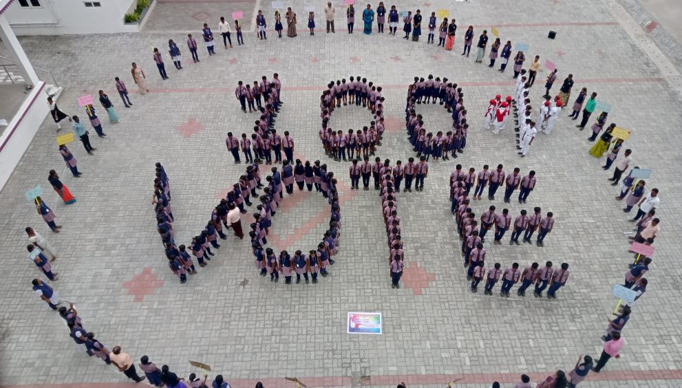 மேலும்,பள்ளியில், 100 சதவீத ஓட்டு’ என்று ஆங்கில எழுத்துக்கள் போல மாணவர்கள் நின்றவாறும் 100 சதவீத ஓட்டுப்பதிவு விழிப்புணர்வு ஏற்படுத்தினர்.