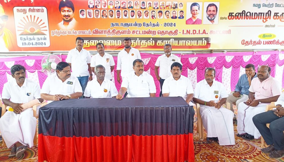 பாக முகவர் கூட்டத்தில், தூத்துக்குடி மக்களவை தொகுதி தேர்தலில் கனிமொழி கருணாநிதியை ஆதரித்து மேற்கொள்ள வேண்டிய பணிகள் குறித்து விளாத்திகுளம் எம்.எல்.ஏ. மார்கண்டேயன் கலந்து கொண்டு ஆலோசனை வழங்கினார்.