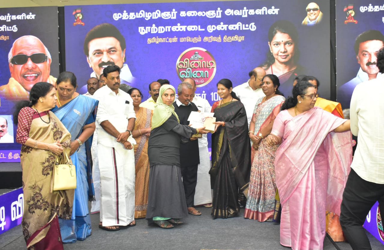 தமிழ் மொழி, இலக்கியம், திராவிட வரலாறு, கலைஞர் ஆற்றிய பணிகள் குறித்து வினாடி வினா கேள்விகளுக்கு ஆர்வத்துடன் போட்டியாளர்கள் பதில் அளித்தனர். இந்த வினாடி வினா போட்டியில் பங்கேற்றவர்களுக்குப் பரிசுகள் மற்றும் சான்றிதழ்கள் வழங்கப்பட்டது.