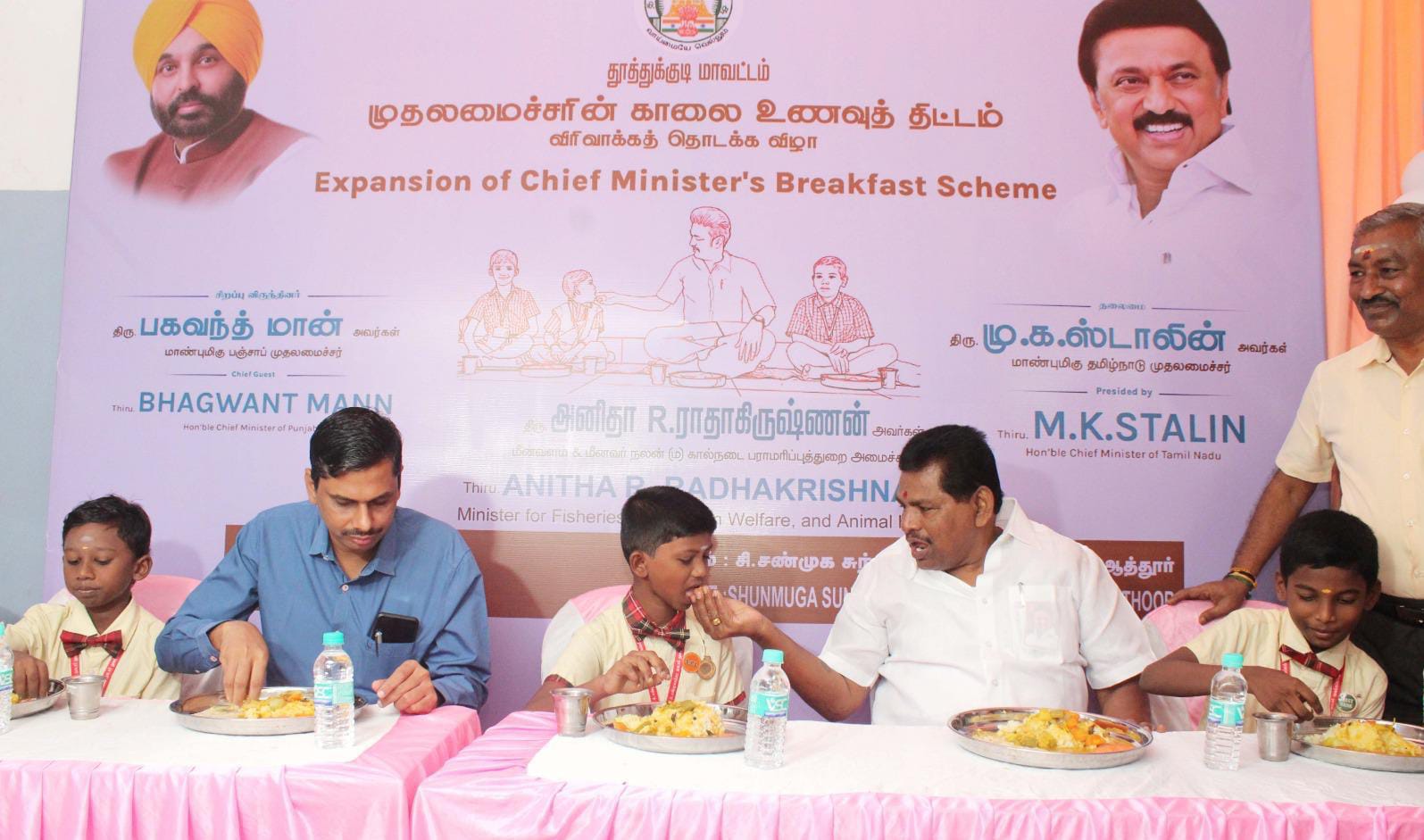 தூத்துக்குடி ஆத்தூரில் முதலமைச்சரின் காலை உணவு விரிவாக்க திட்டத்தை அமைச்சர் அனிதா ராதாகிருஷ்ணன் துவக்கி வைத்தார்