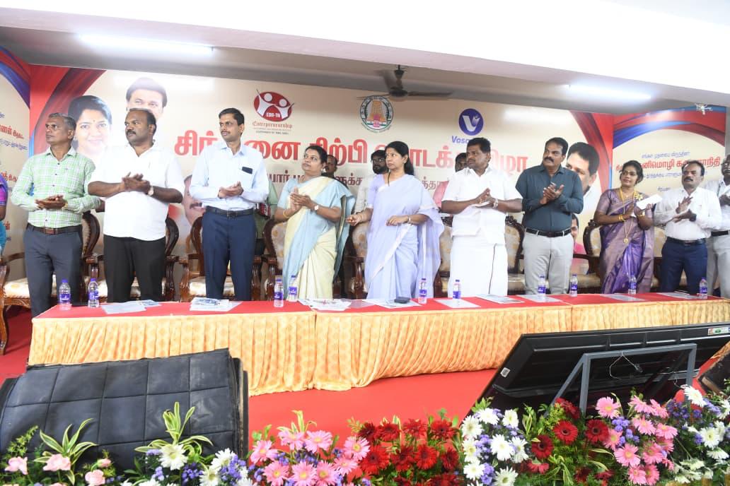 தொழில் மேம்பாட்டுத்துறை, பள்ளிக்கல்வித்துறை இணைந்து தொழில் முனைவோர் மேம்பாடு மற்றும் புத்தாக்க நிறுவனம், குறிப்பாக பள்ளி மாணவ மாணவியர்களின் கண்டுபிடிப்புகளை ஊக்குவிக்கும் விதமாக சிந்தனை சிற்பி நிகழ்ச்சி சிறப்பாக ஏற்பாடு செய்யப்பட்டுள்ளது.