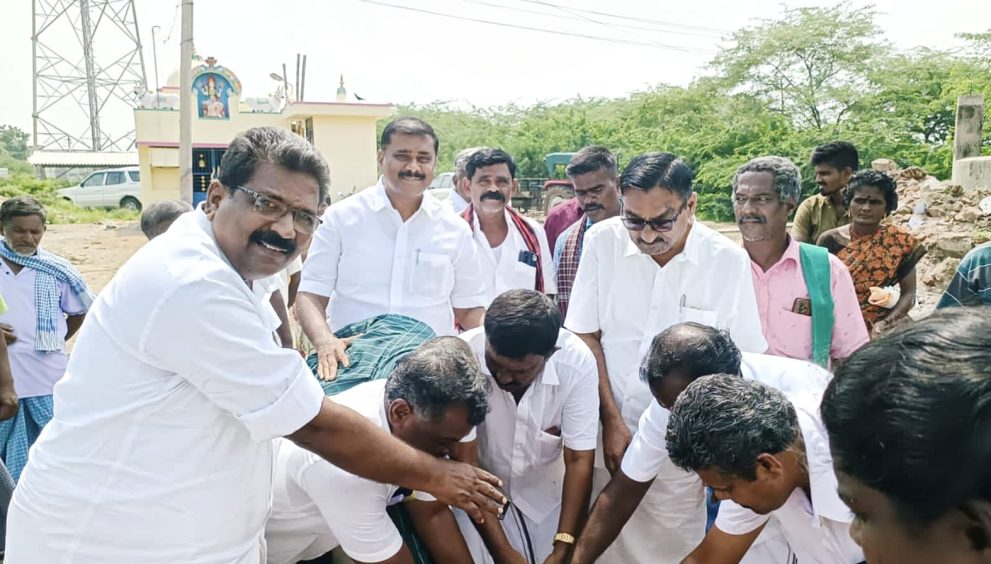 தூத்துக்குடி மாவட்டம், விளாத்திகுளம் சட்டமன்ற தொகுதிக்குட்பட்ட புதூர் ஊராட்சி ஒன்றியம், என்.வேடப்பட்டி ஊராட்சியில் சட்டமன்ற உறுப்பினரின் தொகுதி மேம்பாட்டு நிதியின் கீழ் ரூ.12-லட்சம் மதிப்பீட்டில் நியாயவிலைக்கடை கட்டுவதற்கான கட்டுமான பணியினை விளாத்திகுளம் சட்டமன்ற உறுப்பினர் ஜி.வி.மார்கண்டேயன் அடிக்கல் நாட்டி துவக்கி வைத்தார்.