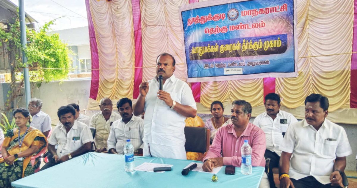 தூத்துக்குடி மாநகராட்சி தெற்கு மண்டல அலுவலத்தில் நடைபெற்ற பொதுமக்கள் குறைதீர்க்கும் முகாமிற்கு மேயர் ஜெகன் பெரியசாமி தலைமை வகித்தார். மண்டலத் தலைவர் வக்கீல் பாலகுருசுவாமி, உதவி ஆணையர் கல்யாணசுந்தரம் முன்னிலை வகித்தனர்.