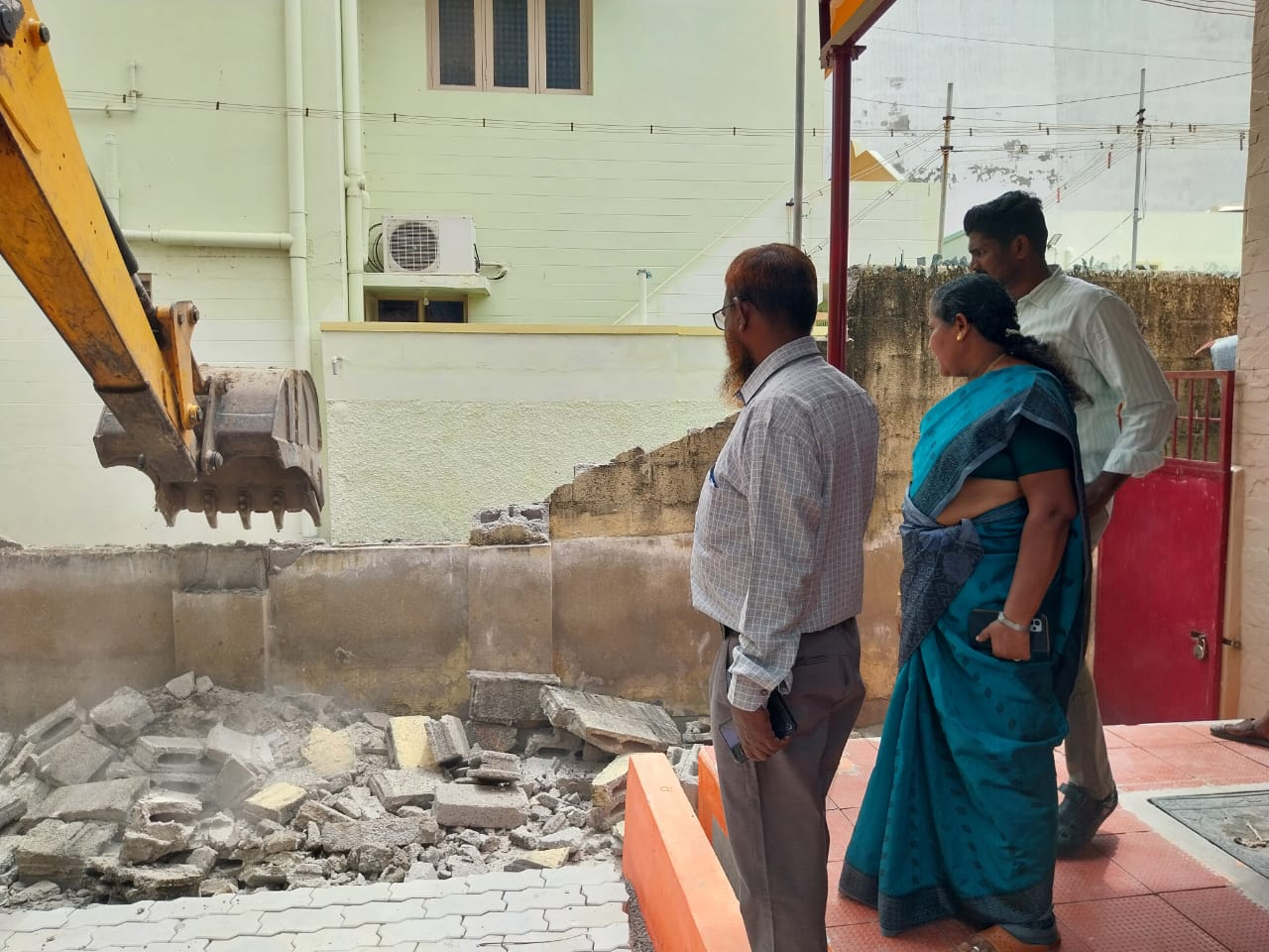 ◊ ரத்னா காலனியில் இருந்து சண்முகபுரம் 1-வது தெருவுக்குச் செல்லும் சாலையில் இருந்த ஆக்கிரமிப்பு, ◊ரத்னா காலனியில் இருந்து மற்றொரு சண்முகபுரம் சாலையில் ஹாலோ பிளாக் கல் மூலம் எழுப்பப்பட்ட சுவர், ◊ வி.இ.ரோட்டிலிருந்து சண்முகபுரத்துக்கு செல்லும் மற்றொரு சாலையில் இருந்த ஆக்கிரமிப்பு — ஆகிய மூன்றையும் ஒரே நாளில் இடித்து அகற்றினர். |