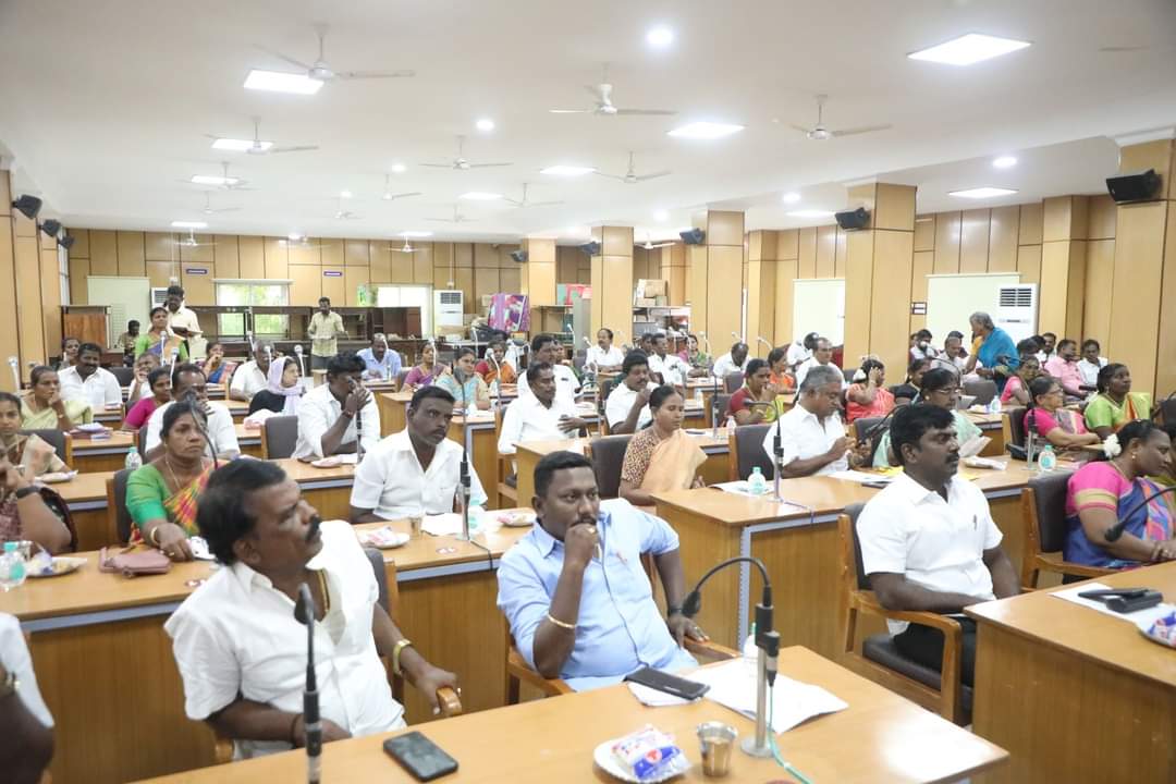 தூத்துக்குடி மாநகராட்சி அலுவலக கூட்ட அரங்கில் சாதாரண கூட்டம் மேயர் ஜெகன் பெரியசாமி தலைமையில் ஆணையர் மதுபாலன், துணை மேயர் ஜெனிட்டா செல்வராஜ் முன்னிலையில் நடைபெற்றது.