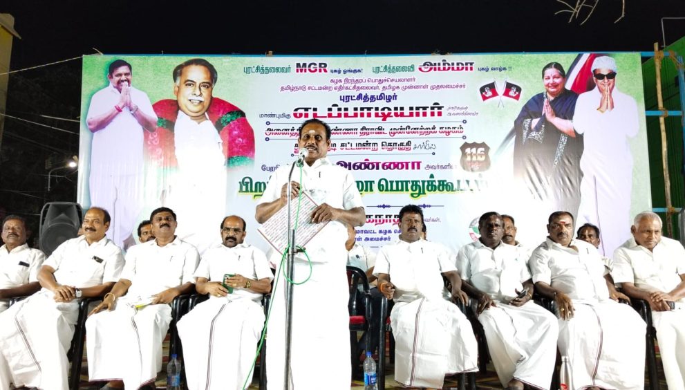 தூத்துக்குடி அதிமுக பொதுச்செயலாளரும் முன்னாள் முதலமைச்சருமான எடப்பாடி உத்தரவிற்கிணங்க தூத்துக்குடி சட்டமன்ற தொகுதி சார்பில் அண்ணா 116வது பிறந்தநாளையொட்டி டூவிபுரம் 5வது தெருவில் நடைபெற்ற பொதுக்கூட்டத்திற்கு பகுதி செயலாளர் நட்டார்முத்து, தலைமை வகித்தார். பகுதி செயலாளர் ஜெய்கணேஷ், துணைச்செயலாளர் செண்பகச்செல்வன், பகுதி ஜெ பேரவை செயலாளர் சுடலைமணி, திருநெல்வேலி மண்டல தகவல் தொழில்நுட்ப பிாிவு இணைச்செயலாளரும் மாநகராட்சி எதிர்கட்சி கொறடாவுமான வக்கீல் மந்திரமூர்த்தி, மாவட்ட ஜெ பேரவை துணைச்செயலாளர் மாாியப்பன், ஆகியோர் முன்னிலை வகித்தனா். பகுதி செயலாளர் முருகன், வரவேற்புரையாற்றினார்.