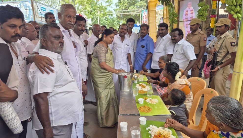 தூத்துக்குடி காமராஜர் 122-வது பிறந்த நாளை முன்னிட்டு கிருஷ்ணராஜபுரத்தில் உள்ள பத்ரகாளியம்மன் திருக்கோவிலில் நடைபெற்ற அன்னதானத்தை வடக்கு மாவட்ட திமுக செயலாளரும் சமூகநலன் மற்றும் மகளிர் உரிமைத் துறை அமைச்சருமான கீதாஜீவன் துவக்கி வைத்தார்.