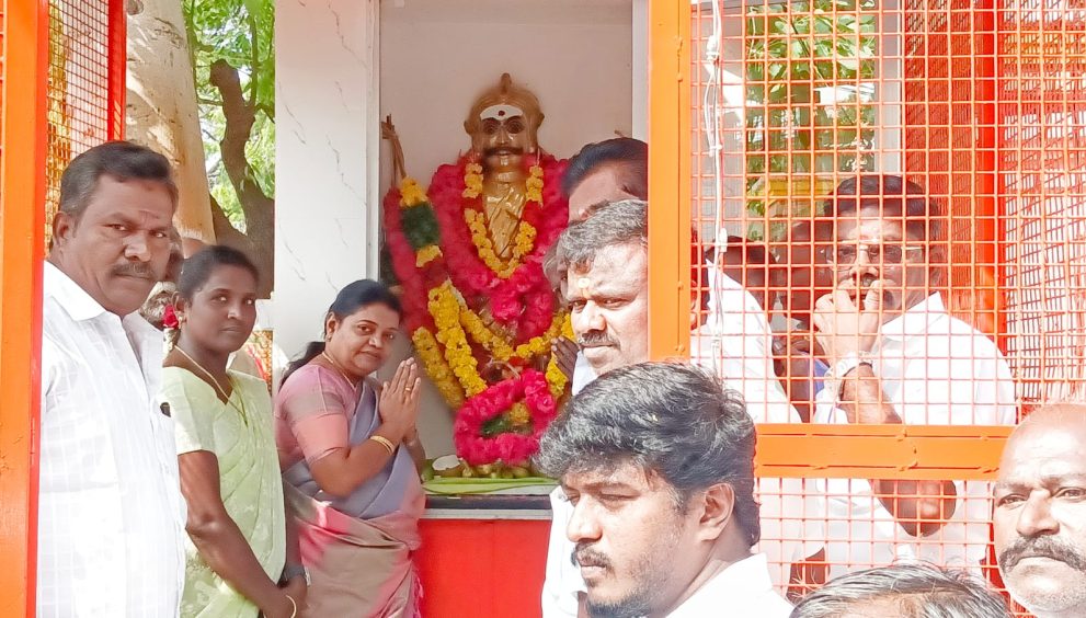 தூத்துக்குடி,சுதந்திர வீரர் வீரபாண்டிய கட்டபொம்மன் 266 வது பிறந்த நாளை முன்னிட்டு தூத்துக்குடி கட்டபொம்மன் நகரில் அமைந்துள்ள அவரது திருவுருவச் சிலைக்கு தூத்துக்குடி வடக்கு மாவட்ட திமுக செயலாளரும் சமூக நலன் மற்றும் மகளிர் உரிமைத்துறை அமைச்சருமான கீதாஜீவன் மாலை அணிவித்து மரியாதை செலுத்தினார்.