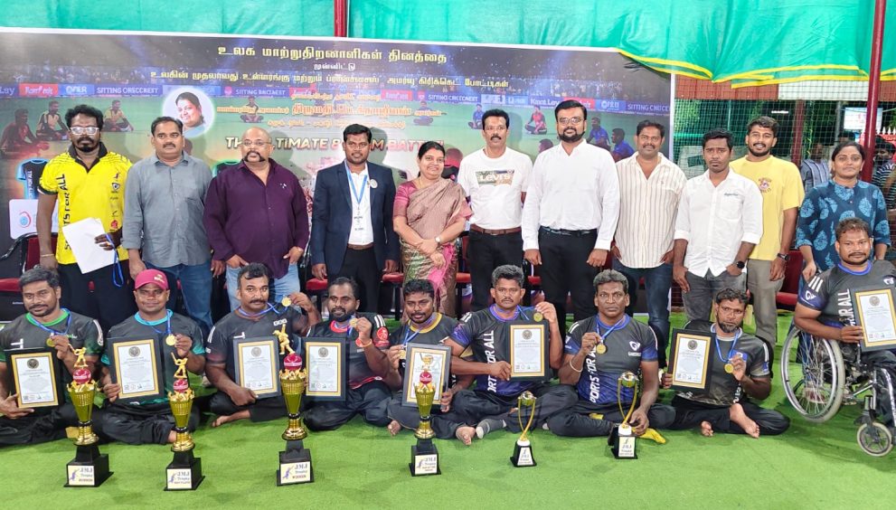 தூத்துக்குடி உலக மாற்றுதிறனாளிகள் தினவிழாவை முன்னிட்டு உலகின் முதலாவது உள்ளரங்கு ப்ரான்ச்சைஸ் சிட்டிங் கிரிக்கெட் டோர்னமென்ட் போட்டியை தூத்துக்குடி கோமதிபாய் காலணியில் உள்ள உள்விளையாட்டு அரங்கில் வடக்கு மாவட்ட திமுக செயலாளரும் சமூகநலன் மற்றும் மகளிா் உாிமைத்துறை அமைச்சர் கீதாஜீவன் தலைமையில் தமிழக மாற்று திறனாளிகளுக்கு நடைபெற்றது. இதில் தமிழகத்தின் சிறந்த சிட்டிங் கிரிக்கெட் வீரர்கள் எட்டு அணிகளாக ஏலத்தில் தேர்ந்தெடுக்கப் பட்டு சம பலத்துடன் மோதினர். இது உலகின் முதன்முறையாகும்.