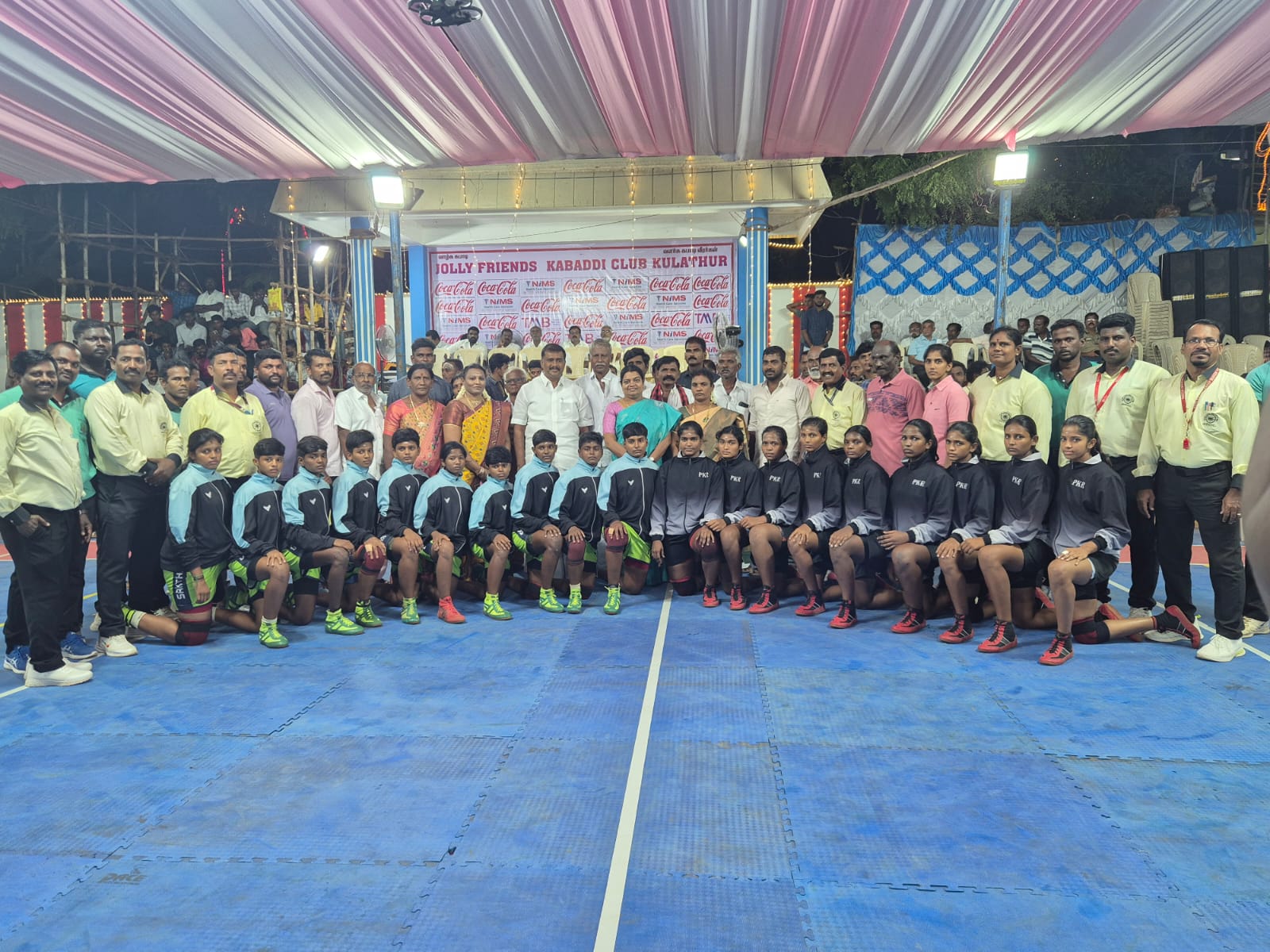 விளாத்திகுளம் :குளத்தூர் அன்னை ஸ்ரீ பத்திரகாளியம்மன் கோவில் ஆனி பெருந்திருவிழாவை முன்னிட்டும்,பெருந்தலைவர் காமராஜர் பிறந்த நாளை முன்னிட்டு நடத்தும் 60-ம் ஆண்டு மாபெரும் மின்னொளி ஆண்/ பெண் கபாடி போட்டியினை .சமூக நலன் மற்றும் மகளிர் உரிமைத் துறை அமைச்சர்,கீதாஜீவன் மற்றும்,விளாத்திகுளம் சட்டமன்ற உறுப்பினர் G.V.மார்கண்டேயன் ஆகியோர் இருவரும் துவங்கி வைத்து வீரர்களுக்கு வாழ்த்து தெரிவித்தார்கள்.