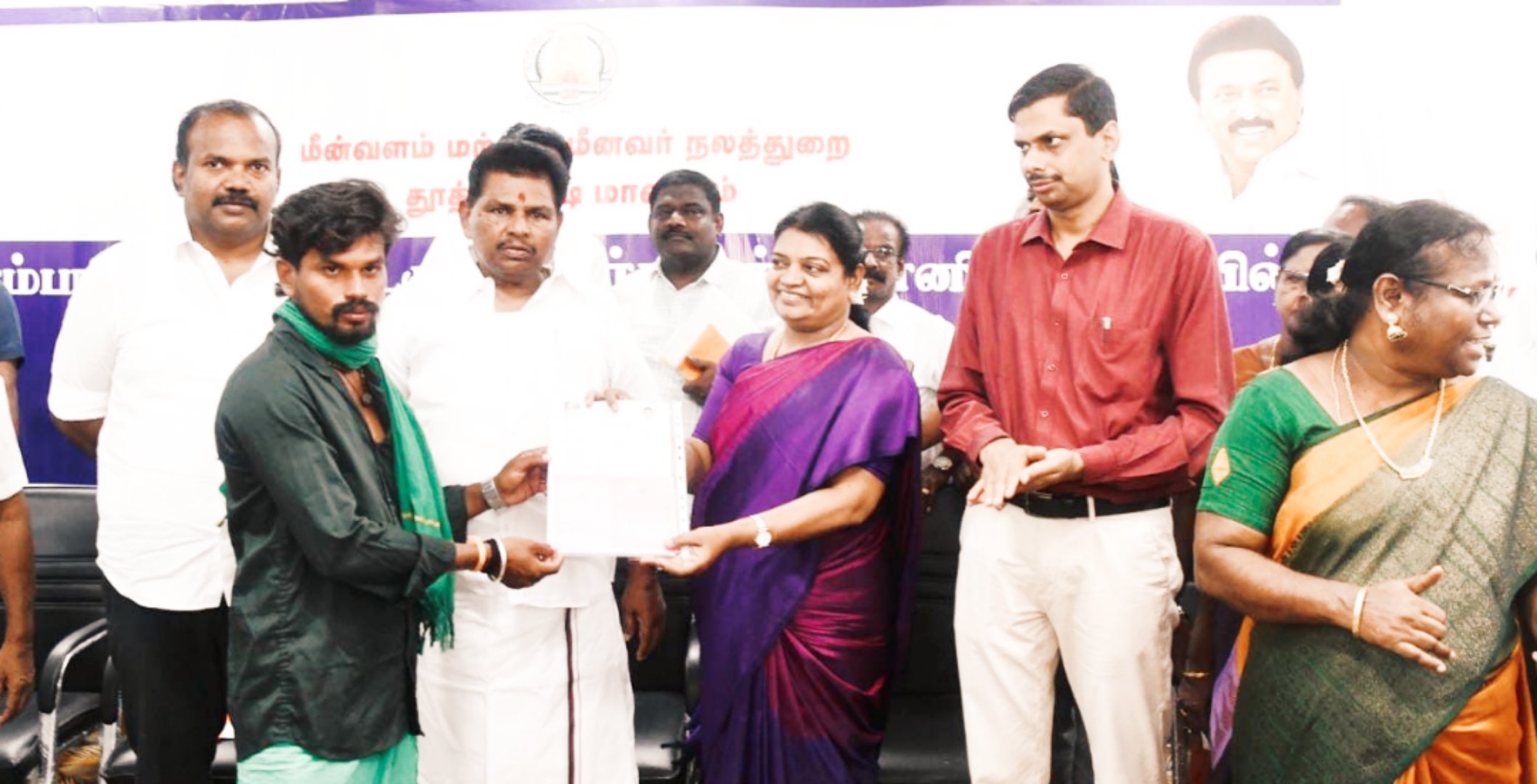 தூத்துக்குடி ஒருங்கிணைந்த மீன்வளம் மற்றும் மீனவர் நலத்துறை அலுவலக வளாகத்தில் 11/8/2025 அன்று நடைபெற்ற விழாவில் மீன்வளம் – மீனவர் நலத்துறை மற்றும் கால்நடை பராமரிப்பு அமைச்சர் அனிதா ராதாகிருஷ்ணன், சமூக நலன் மகளிர் உரிமைத்துறை அமைச்சர் கீதாஜீவன் ஆகியோர் 148 பாரம்பரிய நாட்டுப் படகுகளுக்கு புதியதாக தொழிலக மானிய மண்ணெண்ணெய் பெறும் அட்டை மற்றும் உயிர்காப்பு சட்டைகளை, தூத்துக்குடி மாவட்ட ஆட்சியர் இளம்பகவத் முன்னிலையில் வழங்கினார்கள்.