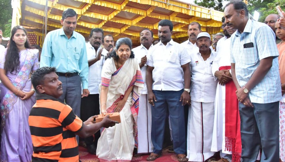 தொடர்ந்து ஸ்ரீவைகுண்டம் பேரூராட்சியில், பாராளுமன்ற உறுப்பினர் தொகுதி மேம்பாட்டு நிதியிலிருந்து ரூ. 19 இலட்சம் மதிப்பீட்டில் புதியதாக கட்டப்படவுள்ள நியாய விலைக் கடை கட்டடத்திற்கு கனிமொழி கருணாநிதி எம்பி, அடிக்கல் நாட்டினார்.