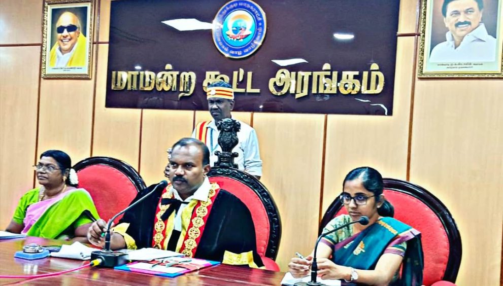 தூத்துக்குடி மாநகராட்சி சாதாரண கூட்டம் மாநகராட்சி கூட்ட அரங்கில் மேயர் ஜெகன் பொியசாமி தலைமையில் நடைபெற்றது, ஆணையர் எஸ்.பிரியங்கா, துணை மேயர் செ.ஜெனிட்டா முன்னிலை வகித்தனர்.