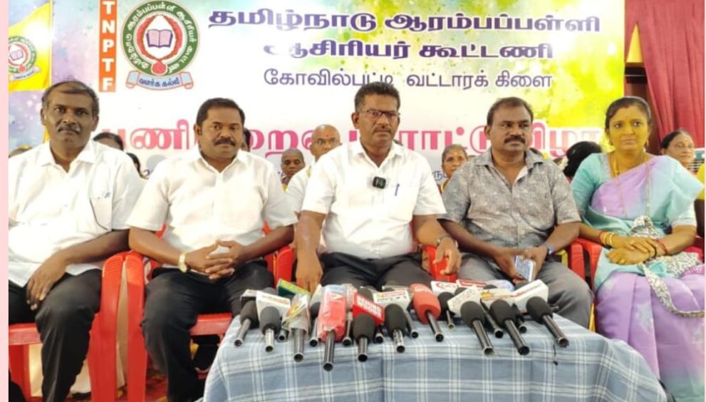 கோவில்பட்டி:தமிழ்நாடு ஆரம்பப்பள்ளி ஆசிரியர் கூட்டணி மாநில பொதுச்செயலாளர் மயில், இன்று 30-08-2025 கோவில்பட்டியில் செய்தியாளர்கள் சந்திப்பில் தமிழக அரசுக்கு விடுத்த கோரிக்கை; இதுகுறித்து அவர் கூறுகையில்,
