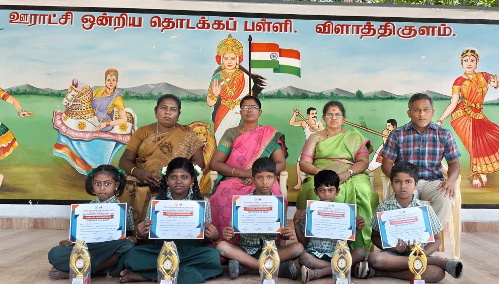 கோவில்பட்டியில் தனியாா் திருமண மண்டபத்தில் வைத்து தென்னிந்திய ஸ்போர்ட்ஸ் அண்ட் கல்சுரல் டிரஸ்ட் மற்றும் ராஜ் யோகா ஸ்கேட்டிங் ஸ்போர்ட்ஸ் கல்சுரல் டிரஸ்ட் சாா்பில் 10-வது மாநில அளவிலான யோகா சாம்பியன்சிப் போட்டி நடைபெற்றது. இதில் தனியார் மற்றும் அரசு பள்ளி மாணவர்கள் நூற்றுக்கும் மேற்பட்டவர் பல்வேறு மாவட்டங்களில் இருந்து கலந்து கொண்டனர். இதில் விளாத்திகுளம் பஞ்சாயத்து யூனியன் தொடக்கப்பள்ளியில் இருந்து கலந்து கொண்ட 3 -ஆம் வகுப்பு மாணவன் நித்திஸ்பாண்டி,4 -ஆம் வகுப்பு மாணவர்கள் கவின்,சாய் சந்தோஷ், 5-ஆம் வகுப்பு மாணவிகள் அழகுலட்சுமி,அக்க்ஷயா ஆகியோர் அதிக புள்ளிகள் பெற்று முதல் பரிசிற்கான சான்றிதழ் மற்றும் கோப்பையை பெற்றனர். வெற்றி பெற்ற மாணவ மாணவிகளை பள்ளி தலைமையாசிரியை,ஆசிரியர்கள் ஆசிரியைகள் மற்றும் பெற்றோர்கள் தங்களது பாராட்டுக்களை தெரிவித்தனர்.