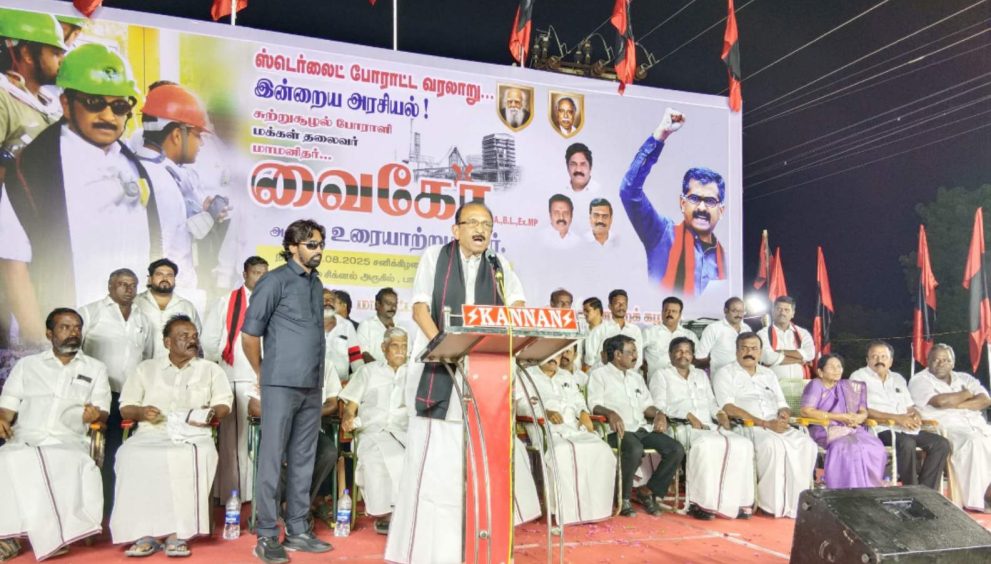 தொடர்ந்து ஸ்டெர்லைட் ஆலைக்கு எதிராக என்னுடைய போராட்ட பயணத்தை சட்ட போராட்டமாக மாற்றி நீதிமன்றம் மூலம் வெற்றியும் கண்டது மதிமுக இயக்கம். ஆனால் பல்வேறு முறைகேடுகளை, விதி முறை மீறல்களை, பணத்தால் வளைத்து விடலாம் என நினைத்து கொண்டு தற்போது நாசகார ஆலை நிர்வாகம் பொருளாதாரத்தில் சாதாரண நிலையில் உள்ள மக்களை, விவசாயிகளை, வேளாண் பெருங்குடி மக்களை, உயிரை பணயம் வைத்து அலை கடலோடு நித்தம் போராடும் மீனவ தொழிலாளர்களை ஆசை காட்டி நேச வார்த்தை கூறி, கரன்சி நோட்டுகளை வாரி இறைத்து நாள் தவறாமல் ஸ்டெர்லைட் ஆலைக்கு ஆதரவாக கூலி போராட்டம் என்ற நாடகம் நடத்தி வருகிறது. இதை வன்மையாக கண்டிப்பதோடு, தொடர்ந்து இந்த நாசாகார ஆலைக்கு எதிராக மதிமுக களத்தில் உண்மையாக உறுதியாக நின்று போராடும். தூத்துக்குடி மாவட்டம் விடுதலை வீரர்கள் வாழ்ந்த தியாகம் நிறைந்த பூமி, திராவிட இயக்க தீரர்களின் வீரம் செறிந்த மண் இது, இங்கே ஸ்டெர்லைட் ஆலையின் ஆள் பிடிப்பு வேலைகளுக்கு இடமில்லை.