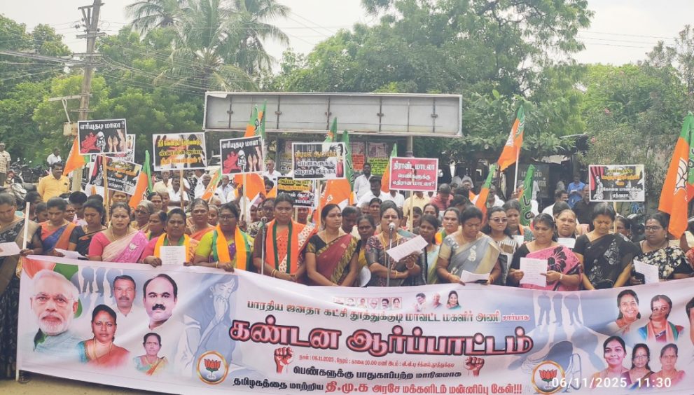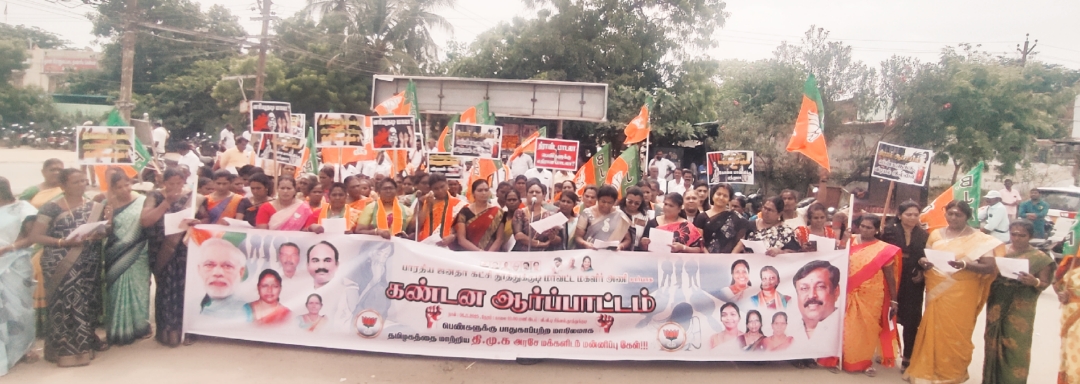 தூத்துக்குடி தெற்கு மாவட்ட பாஜக சார்பாக, தமிழ் சாலையில் உள்ள விவிடி சிக்னல் அருகில் மகளிர் அணி சார்பாக கண்டன ஆர்ப்பாட்டம் நடைபெற்றது.