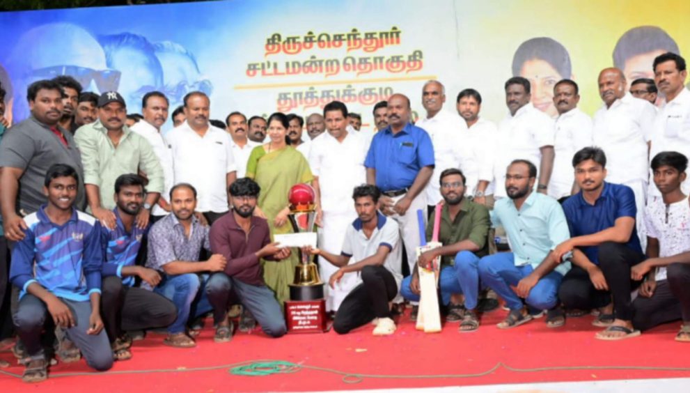 திருச்செந்தூர் கிரிக்கெட் போட்டி: கனிமொழி எம்பி பரிசுகள் வழங்கினார்