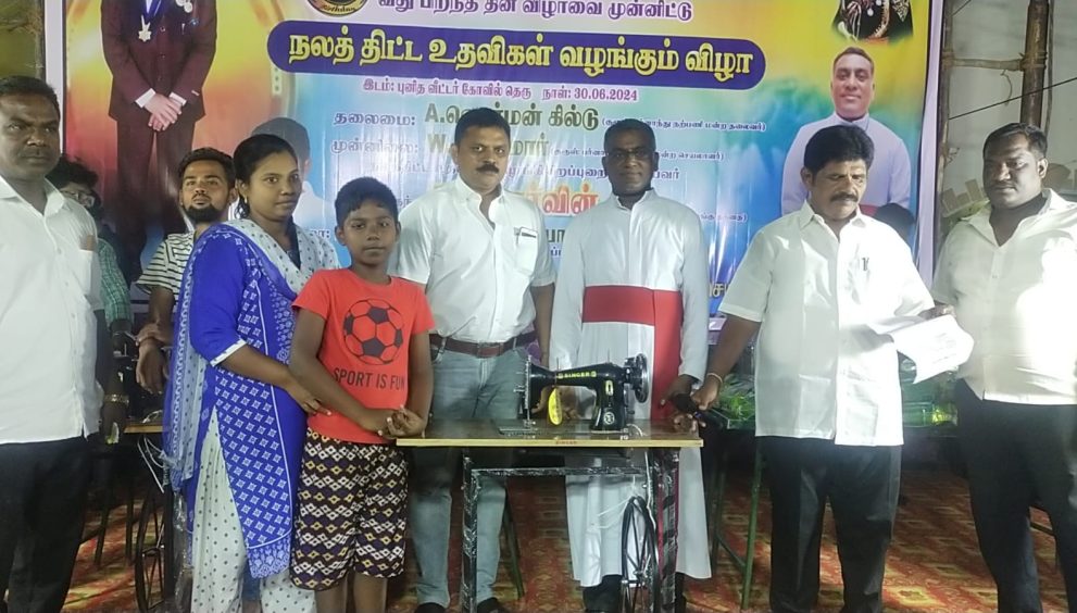 தூத்துக்குடி குரூஸ்பா்னாந்த் 155வது பிறந்த தின விழாவை முன்னிட்டு நலத்திட்ட உதவிகள் வழங்கும் விழா புனித பீட்டர் கோவில் தெருவில் குரூஸ்பர்னாந்த் நற்பனி மன்ற தலைவர் ஹொ்மன் கில்டு தலைமையில், செயலாளர் சசிகுமார் முன்னிலையில் 10 தையல் இயந்திரம், 400 சில்வர் பாத்திரம், 5 கிலோ அாிசிப்பைகள் 200, உள்ளிட்ட 610 ேபருக்கு நலத்திட்ட உதவிகளை பனிமய மாதா கோவில் பங்கு தந்தை ஸ்டார்வின் வழங்கி சிறப்புரையாற்றினார்.
