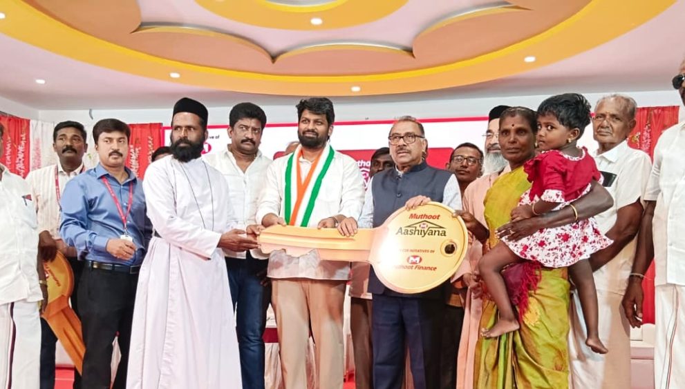 தூத்துக்குடி, திருநெல்வேலி மாவட்டத்தில் கடந்த ஆண்டுகளில் பெய்த கன மழையால் ஸ்ரீவைகுண்டம் மற்றும் திருநெல்வேலி பகுதிகளில் வெள்ளத்தால் பாதிக்கப்பட்டு வீடுகளை இழந்த குடும்பங்களுக்கு ஆஷியானா திட்டத்தின் கீழ் முத்தூட் நிதி நிறுவனம் சமூகநல பொறுப்பு நிதியின் மூலம், தமிழ்நாடு அரசுடன் இணைந்து 11 வீடுகளை கட்டி முடித்து பயனாளிகளுக்கு வழங்கும் விழா 22.09.25 அன்று ஸ்ரீவைகுண்டம் சுப்பிரமணியபுரம் பாலாஜி ஹாலில் நடைபெற்றது.