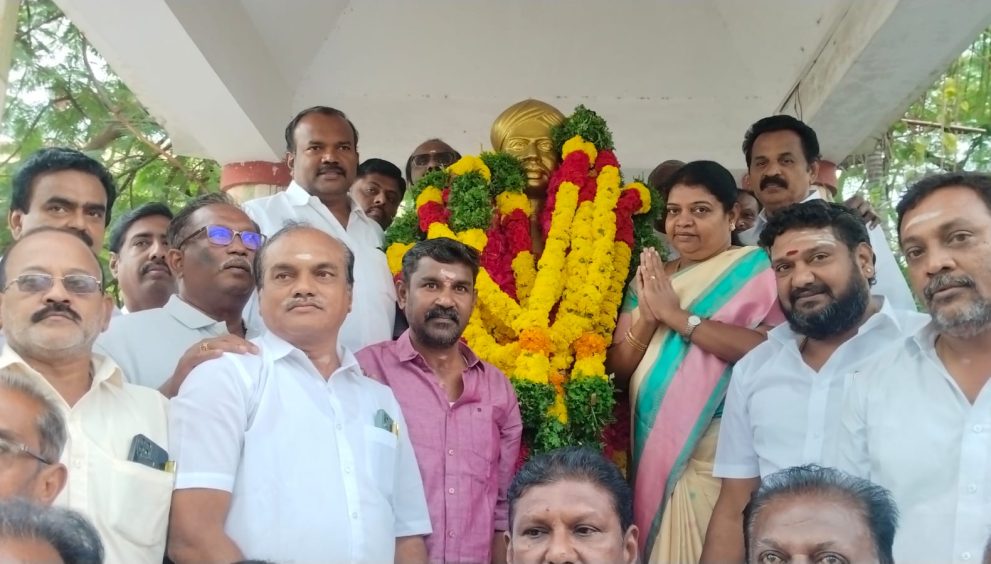 தூத்துக்குடி:சுதந்திரப் போராட்ட தலைவர் வ.உ.சிதம்பரனார் 89ஆம் ஆண்டு நினைவு நாளை முன்னிட்டு, தூத்துக்குடி பழைய மாநகராட்சி அலுவலக வளாகத்தில் உள்ள அவரது சிலைக்கு இன்று மாலை அணிவித்து மரியாதை செலுத்தும் நிகழ்வு நடைபெற்றது. வடக்கு மாவட்ட திமுக செயலாளரும், சமூகநலன் மற்றும் மகளிர் உரிமைத்துறை அமைச்சருமான கீதாஜீவன், தூத்துக்குடி மாநகராட்சி மேயர் ஜெகன் பெரியசாமி ஆகியோர் மாலை அணிவித்து மரியாதை செலுத்தினர்.