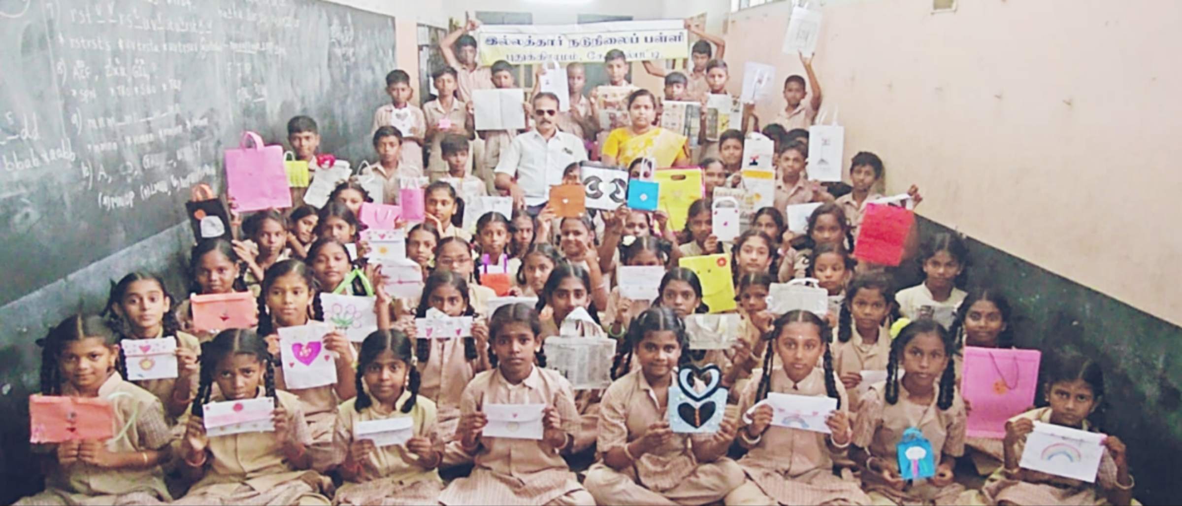 மாணவர்கள் தங்கள் கைவண்ணத்தால் பல்வேறு வகையான அழகிய காகித பைகளைக் கையால் தயாரித்து காட்சிப்படுத்தினர். நிகழ்ச்சியினை பள்ளியின் பொறுப்பு தலைமை ஆசிரியை மற்றும் அனைத்து ஆசிரியர்களும் ஒருங்கிணைத்து சிறப்பாக ஏற்பாடு செய்திருந்தனர்.